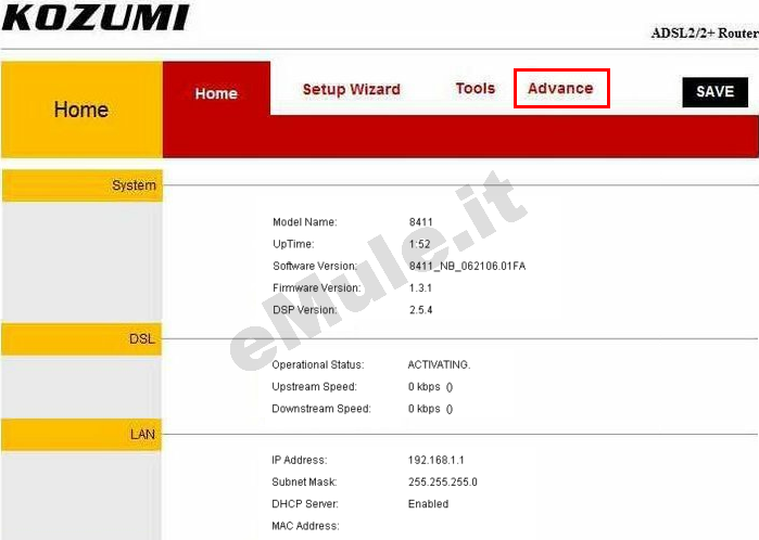 Selezionate il tab Tools -> Reboot, cliccate Save and Reboot, vi verra chiesta conferma, cliccate su OK e attendete che il router si riavvii salvando le modifiche effettuate :