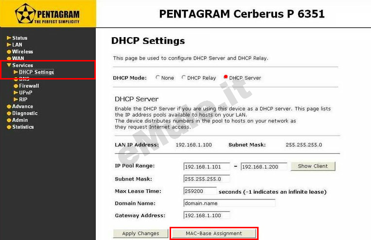 cliccate Services -> DHCP Settings, verificate che DHCP Server sia spuntato,