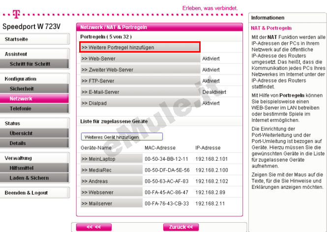 nella schermata succesiva cliccate su Weitere Portregel hinzufügen: