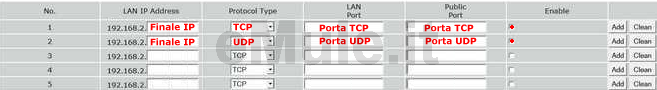 in LAN Port e Public Port mettete il numero di porta